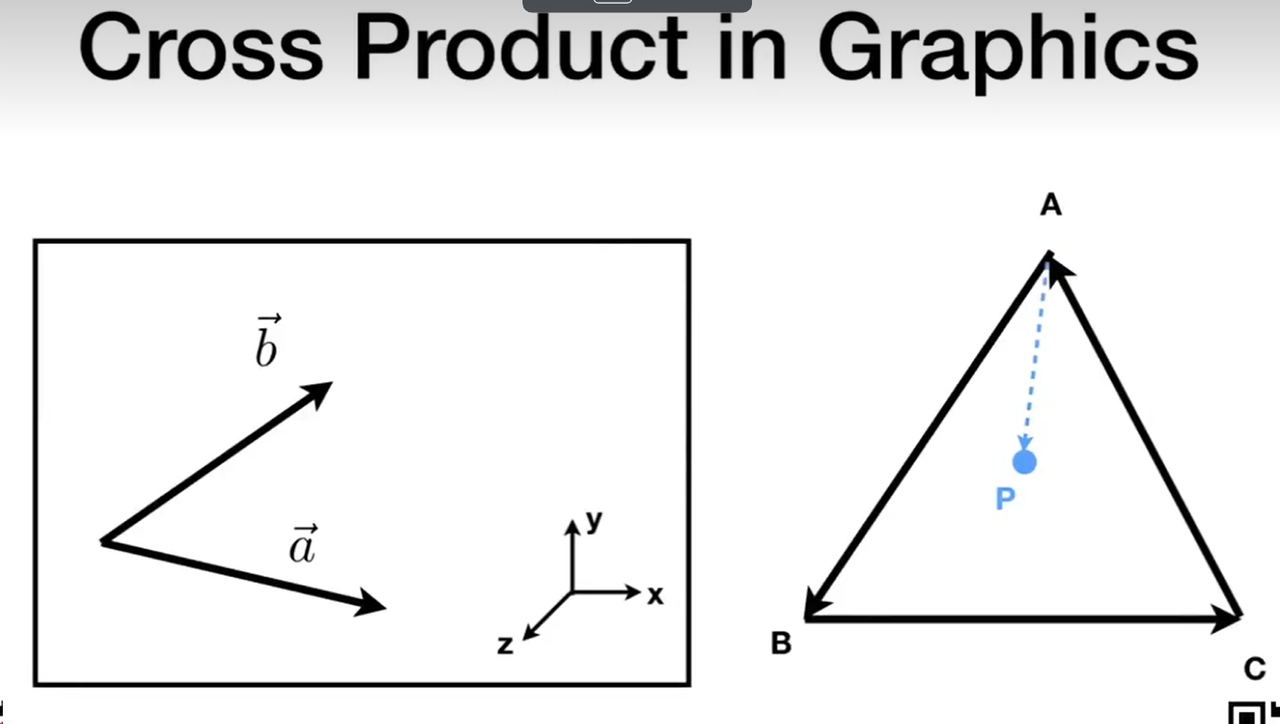 分别用AB、BC、CA向量与AP、BP、PC向量做叉乘,如果结果向量朝向一致,那么点P的位置就在三角形内部,反之则在三角形外部。可以依据脑补得知,无论A、B、C的顺序是顺时针还是逆时针,这个结果都不会改变。