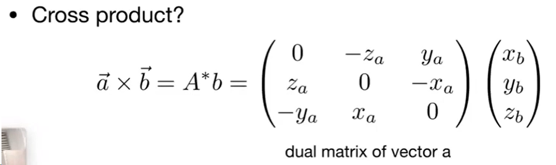 叉乘的矩阵表示方法(什么是dual matrix?好像不是伴随矩阵)